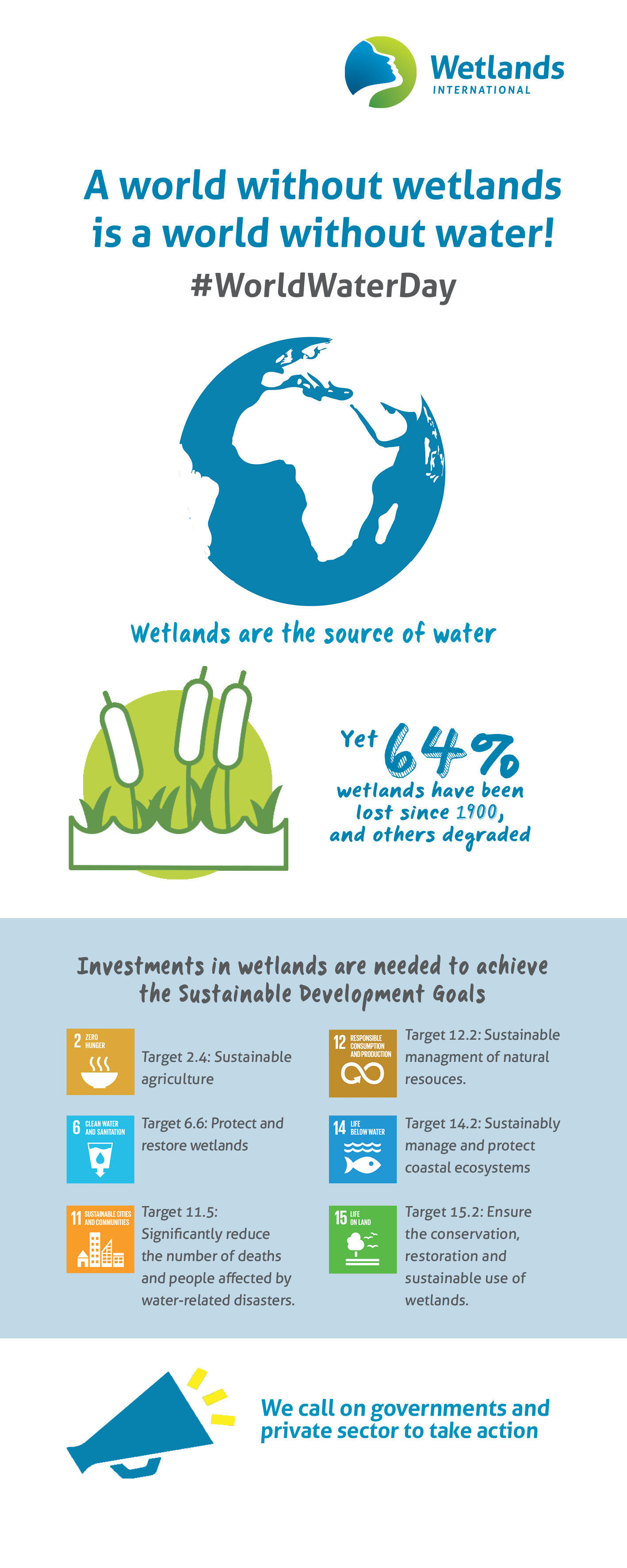 Download and share the infographic on Facebook and Twitter. Or share a message of support: A world without wetlands is a world without water #WorldWaterDay.