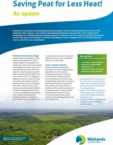 The Talanoa Dialogue Synthesis of the Preparatory Phase which outlines key steps that can be taken by Parties and stakeholders over the coming years to adhere to the goals of the Paris Agreement, highlights that by 2030 the world should have increased protection to natural carbon sinks and reservoirs – such as forests, peatlands and mangroves in a way that respects all Sustainable Development Goals. Wetlands International has contributed to the Talanoa Dialogue through submissions which outline the climate change mitigation and adaptation potential of peatlands and mangroves and wetlands overall and provide recommendations on how to get there.
