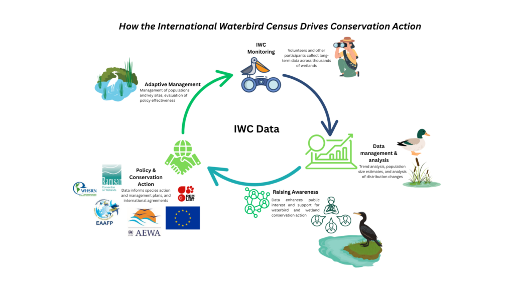 By detecting declines in hunted species, tracking the impact of climate change and avian influenzia, the data from the IWC is essential for guiding waterbird conservation policy and action.