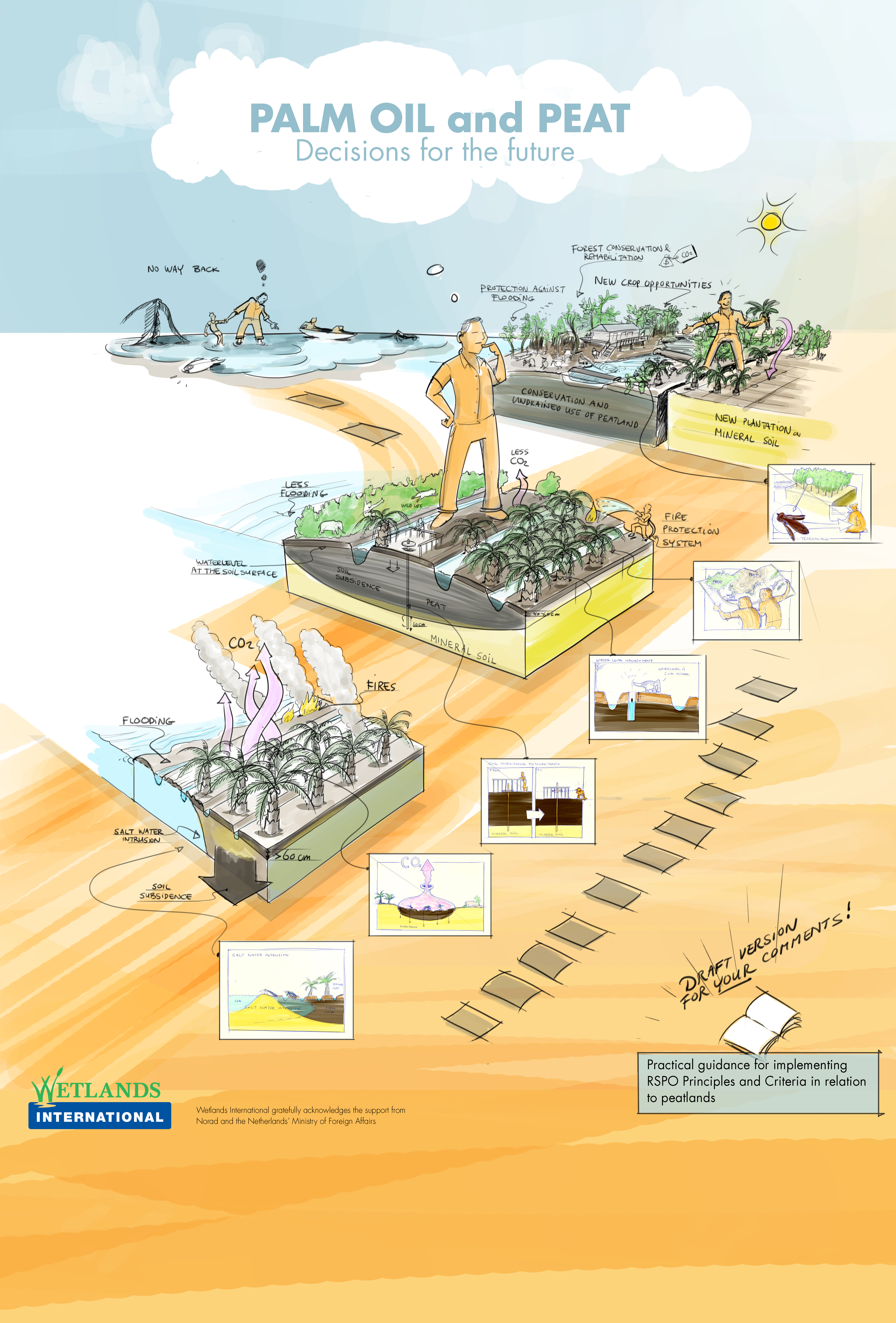 This poster illustrates the different options available to palm oil producers when considering the future of their plantations.