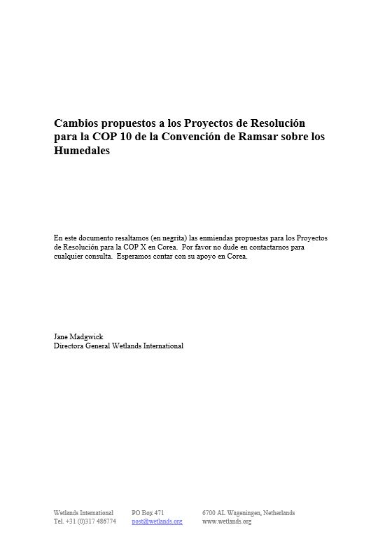 Attached the recommendations on the draft resolutions of the Ramsar Convention on Wetlands COP 10, 28 October till 4 November 2008 in Korea.